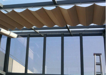 电动天棚帘以时尚、节能、低碳、环保的特点使之成为市面上流行的阳光房遮阳系统, 它以其自己独特的结构,在冬季可以使室内保持恒温,夏季遮阳隔热,可大大节省空调电费。其防紫外线和隔热功能能有效保护家居用品。通过遮阳面料的阻挡方式,阻挡太阳热能,避免温室效应,降低空调能耗。