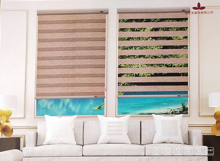 (1) 典雅彩虹柔纱卷帘具有高雅而不浅俗的特性,典雅大方,复古古朴,显示低调大气的装饰风格